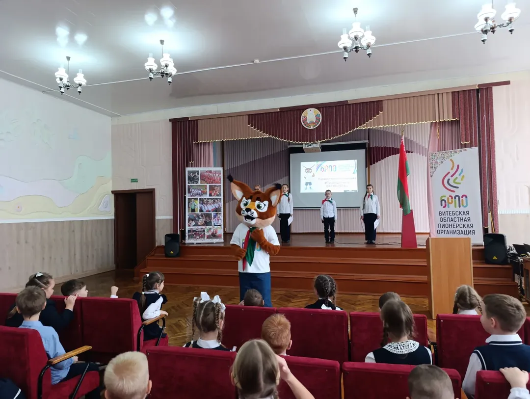 ✔️Ярким моментом праздника стало появление самого верного друга всех белорусских ребят — Рысёнка! 🐾 Он лично поздравил новоиспечённых октябрят, пожелал им быть дружными, смелыми и любознательными.